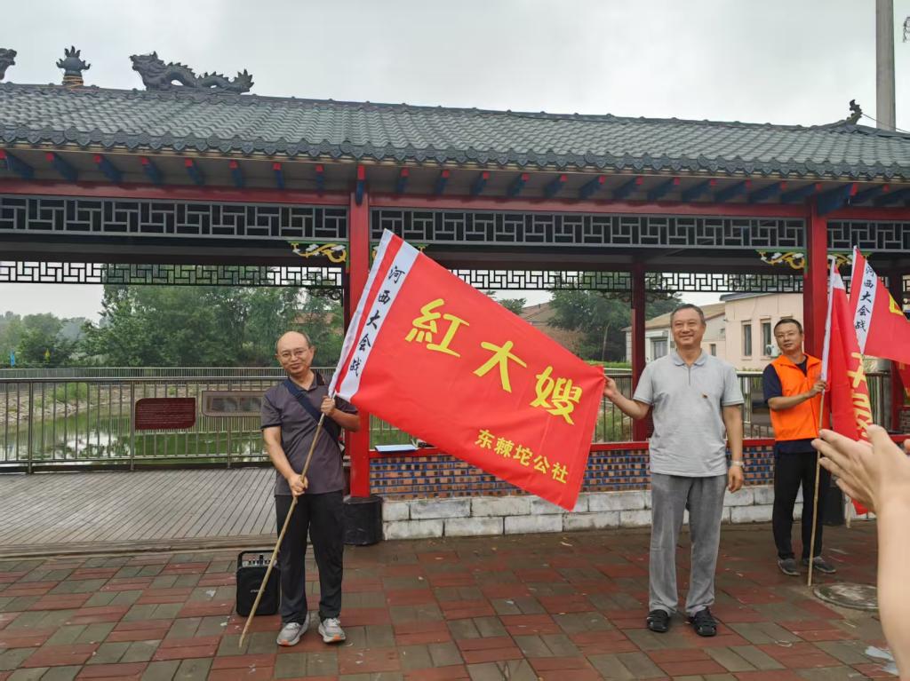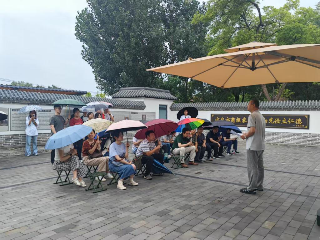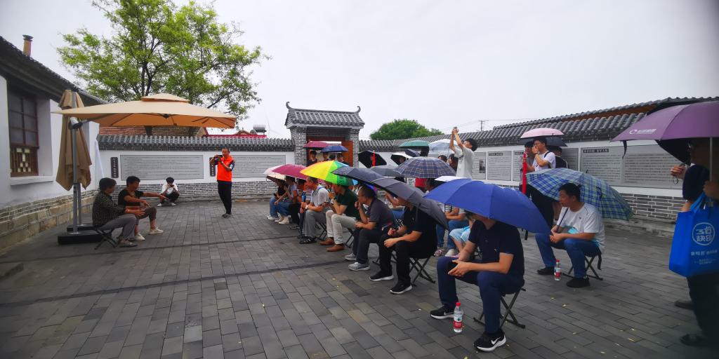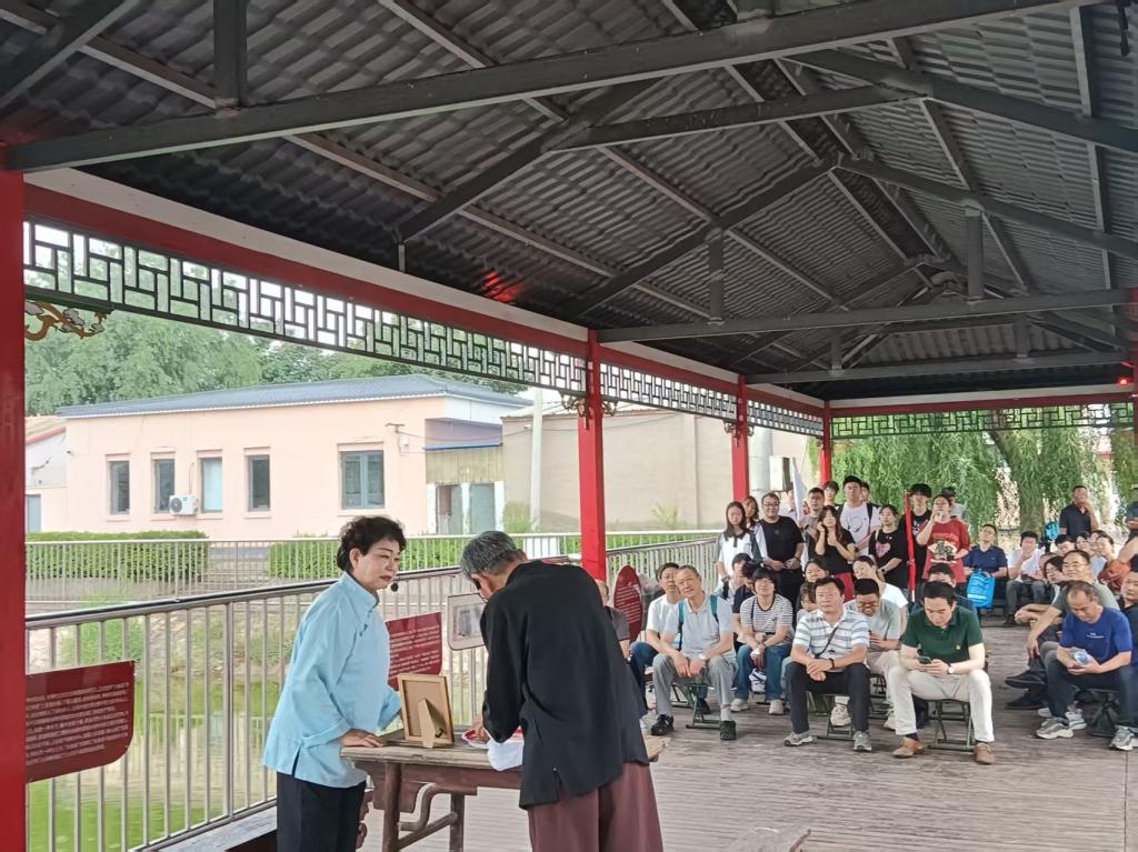 上午9时40分,党员队伍抵达宁河区东棘坨镇活动地点。随着“河西大会战誓师大会”开团仪式上鲜红旗帜的展开,全体人员沉浸式走进1977年宁河人民响应党中央号召“大搞农田基本建设”的壮阔历史。