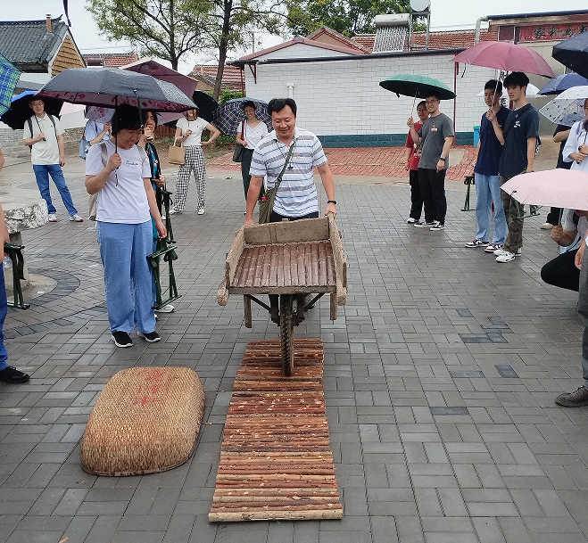 “龙骨桥”“扁担炖肉”……在旧居前小长廊的老物件讲解环节,一件件带着岁月痕迹的生产工具,串联起“党引领人民改天换地”的历史记忆。党员们抚摸着磨得发亮的扁担,聆听亲历者讲述当年“千军万马战农田”的故事,在沉浸式体验中深化了对“人民力量创造历史”的认知。