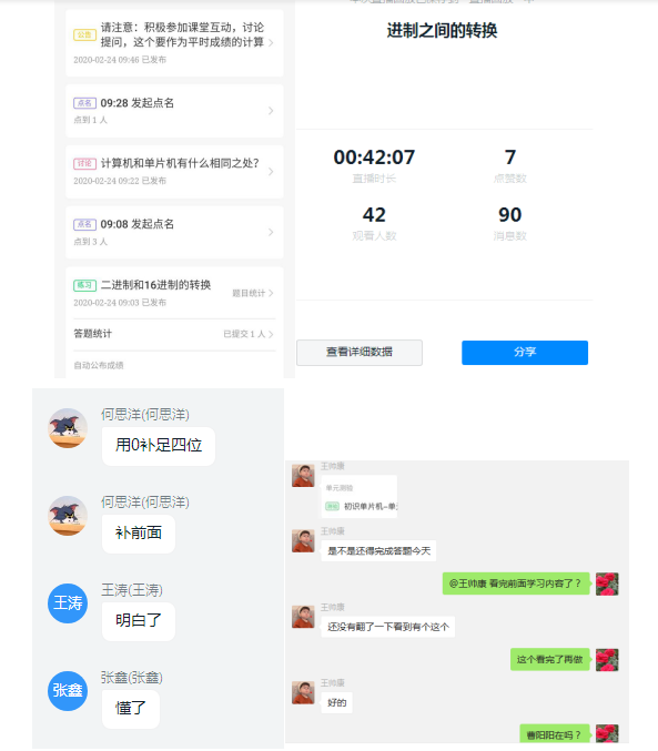图片说明:张素萍,《单片机应用技术》,利用慕课堂进行课堂管理,并在课后通过直播进行答疑,结合微信等手段,巩固学生学习效果。