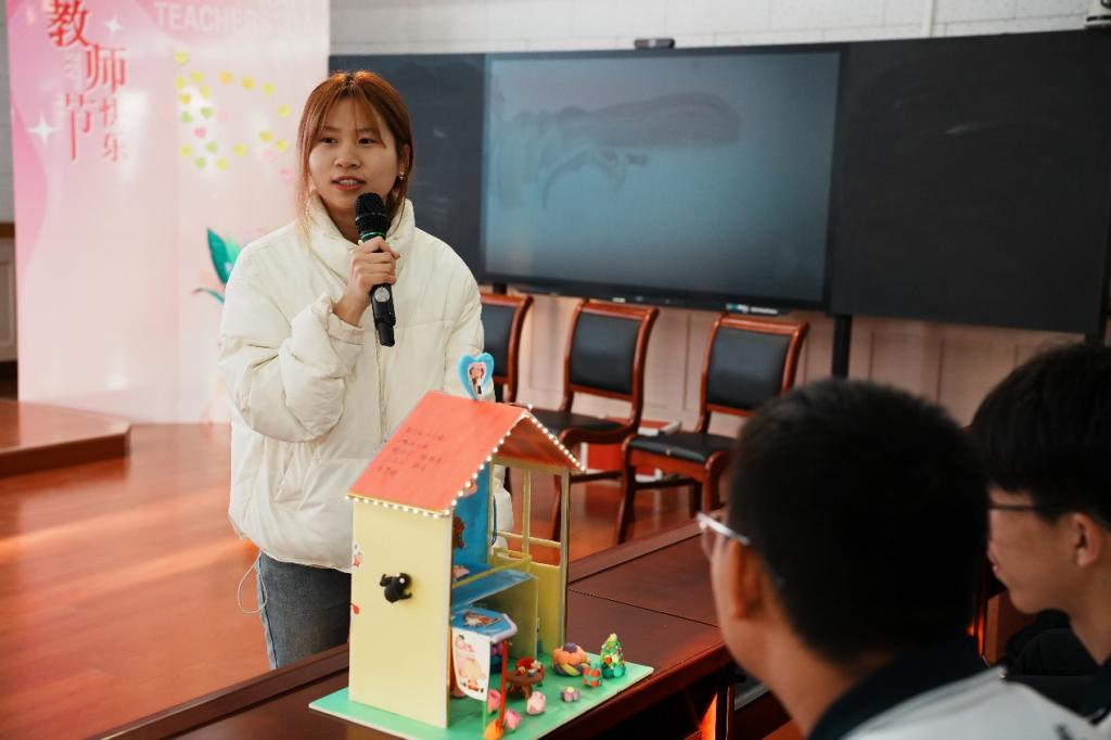 讲座结尾,由能源工程学院的同学带来了一个特别的展示——自制的太阳能光伏建筑模型。通过这个模型,生动地演示了光伏发电如何为日常生活供电,让同学们直观地感受到光伏发电的便捷与实用。