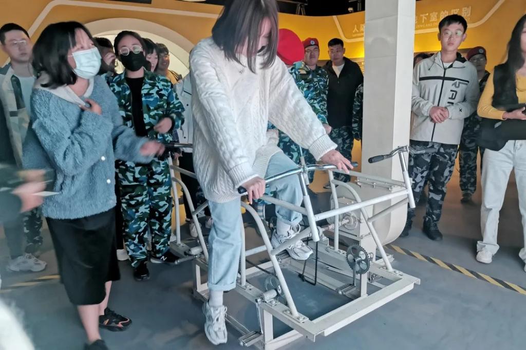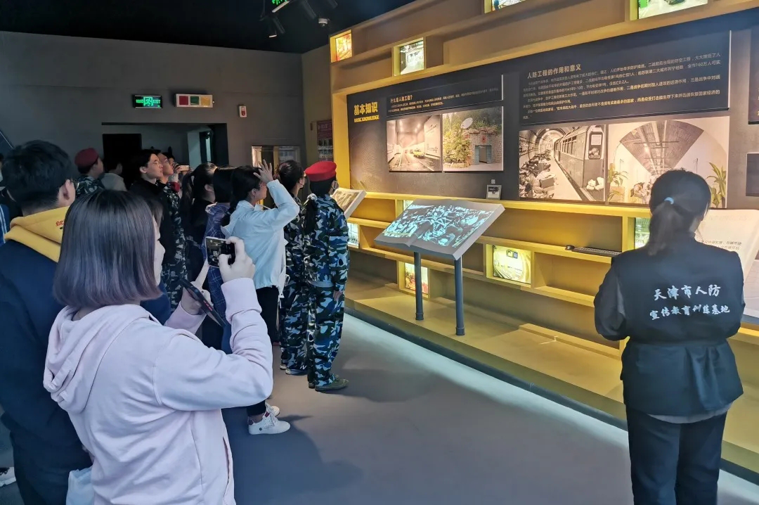 接下来,由讲解员带领新生们来到了人防工程展示区,为同学们讲解了人工程的分类、作用、主体、通风等。